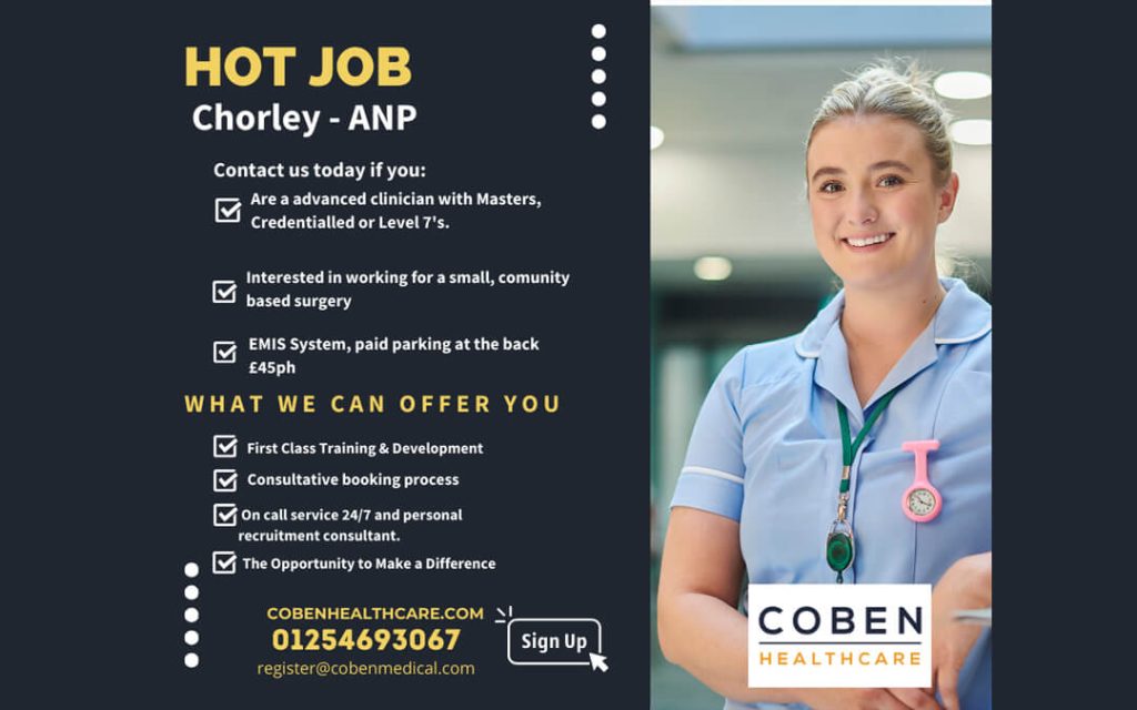 📢 Attention Chorley ANP/ACP’s! 🏥 We have a Surgery based in Chorley who is needing cover in MARCH AND APRIL! System: EMIS Staff: ANP/ACP Pay: £45ph 💰 Paid parking available at the back for your convenience. Get in contact today! 01254 693067 We have dedicated consultants who are waiting to
